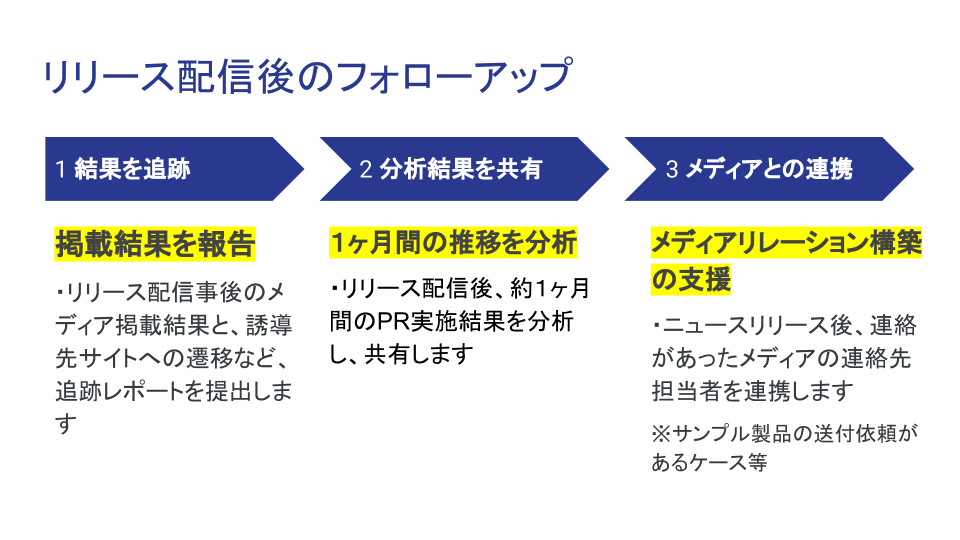 - ニュースリリース配信事後の結果・追跡レポート提出